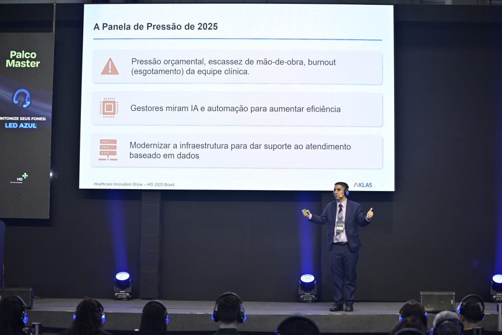 A inteligência artificial deixou de ser promessa para se tornar protagonista nos investimentos em saúde. Esse foi o diagnóstico de Everton Santos, vice-presidente Internacional da KLAS Research, ao apresentar, no segundo dia do Healthcare Innovation Show (HIS), uma radiografia global sobre a transformação digital do setor.