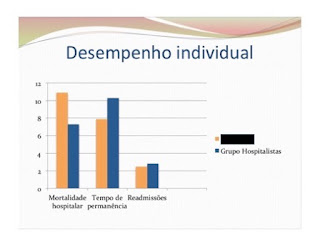 Cada hospitalista recebia seu desempenho comparado ao grupo (a figura abaixo ilustra um pouco a abordagem). Havia um relatório bem mais completo. Era possível comparar-se a si mesmo ao longo do tempo também.