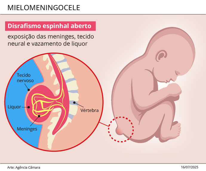 A mielomeningocele é uma malformação congênita caracterizada pelo fechamento incompleto da coluna vertebral durante o desenvolvimento embrionário. Por causa desta condição, os nervos motores ficam expostos e, como resultado, podem surgir complicações graves como paraplegia, incontinência urinária e outros comprometimentos neurológicos.